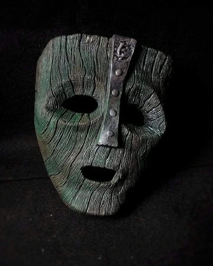 Máscara decorativa The Mask em Resina Poliéster Dimensões : tamanho real, 21cm x 18cm Peso : 500grs Pintura manual com tintas acrílicas